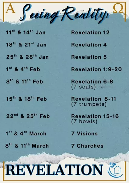 Join us in January to March as we look at what Revelation has to say about the world we live in and how we can understand reality through it at our Sunday 8 & 10am services, and our 11am Wednesday service.